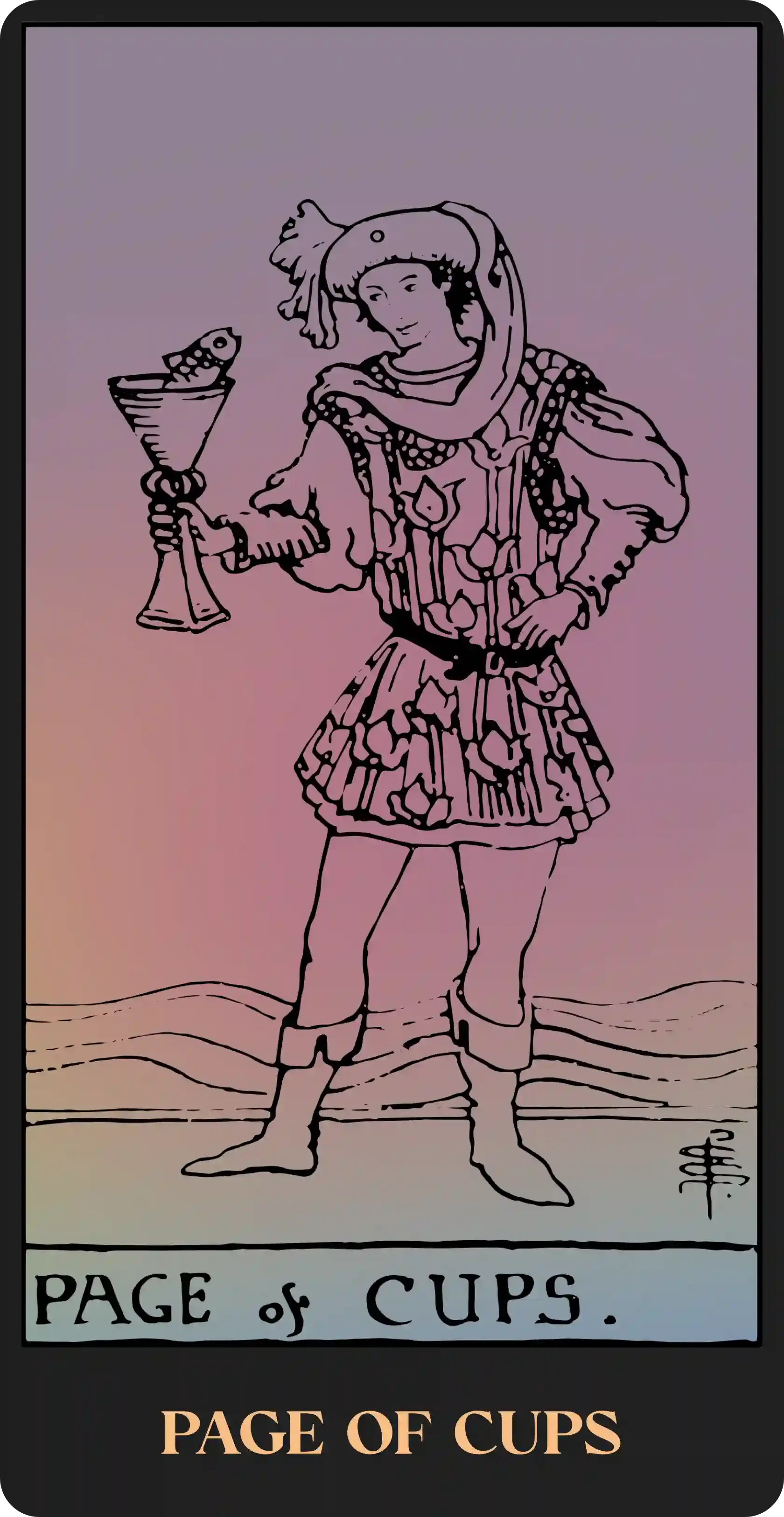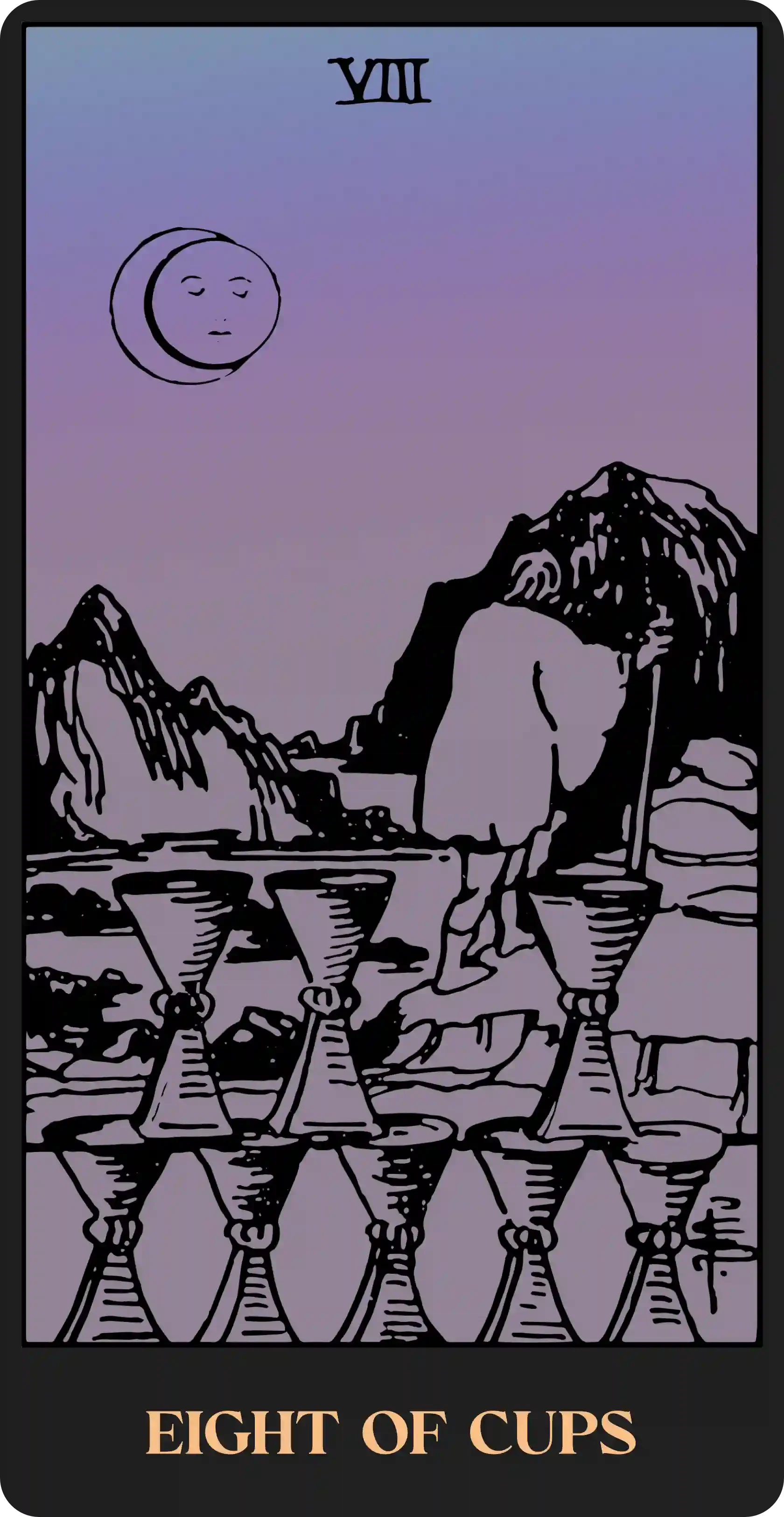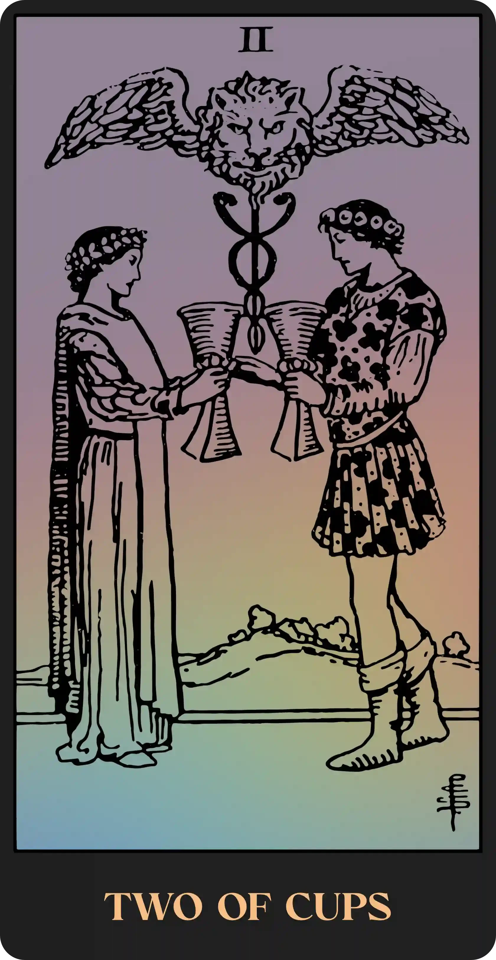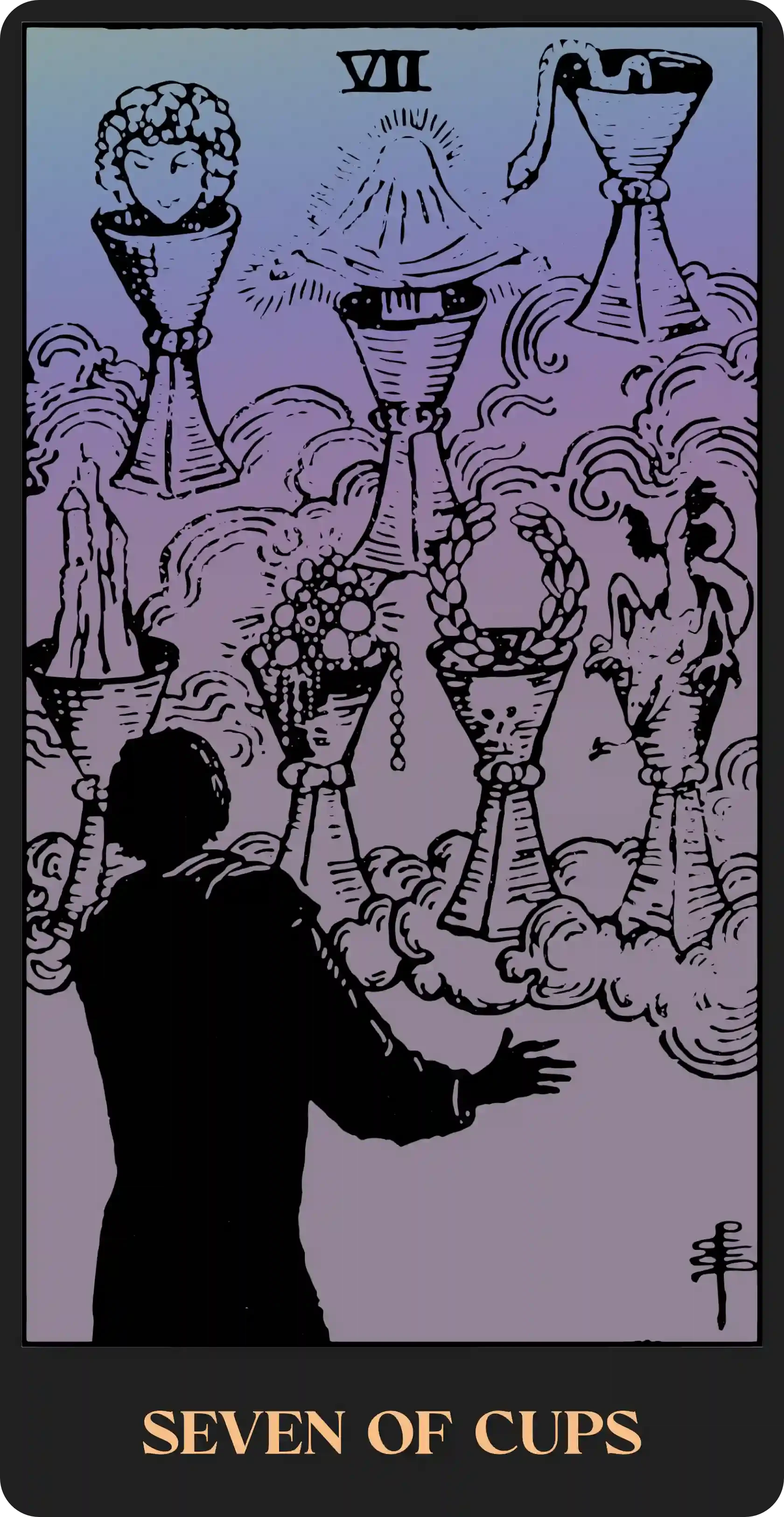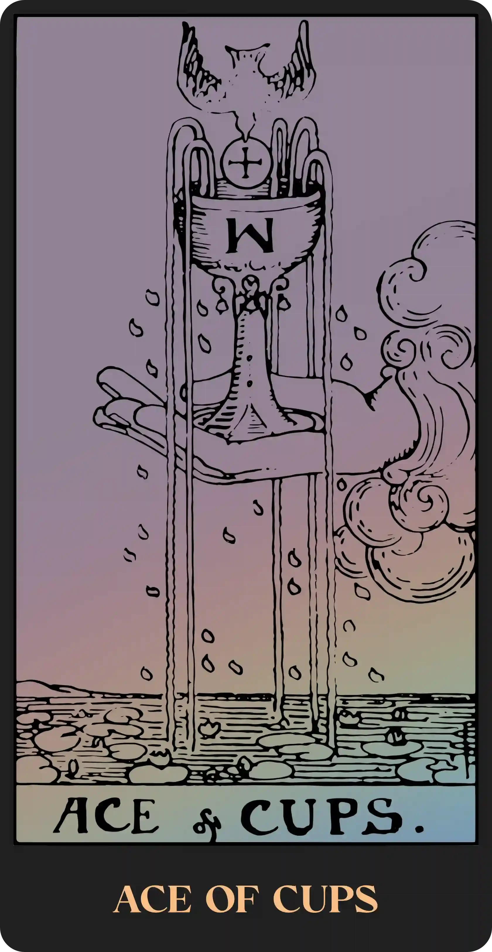 When interpreting the Suit of Cups, it helps to imagine the cup motif as a stand-in for the human heart. Our hearts store our emotions, as symbolized by water, along with the deep desires we hide from others or ourselves. In this way, the Cups are the most vulnerable of the Minor Arcana, and therefore, show that we are faced with two choices when overcome with emotion: either we seal up and protect ourselves from spilling out our heart’s longings, or share ourselves with others, pouring into their cups from our own. Either may pose a risk to our well-being or help us on our journey, and there is great difficulty in discerning the best course of action.