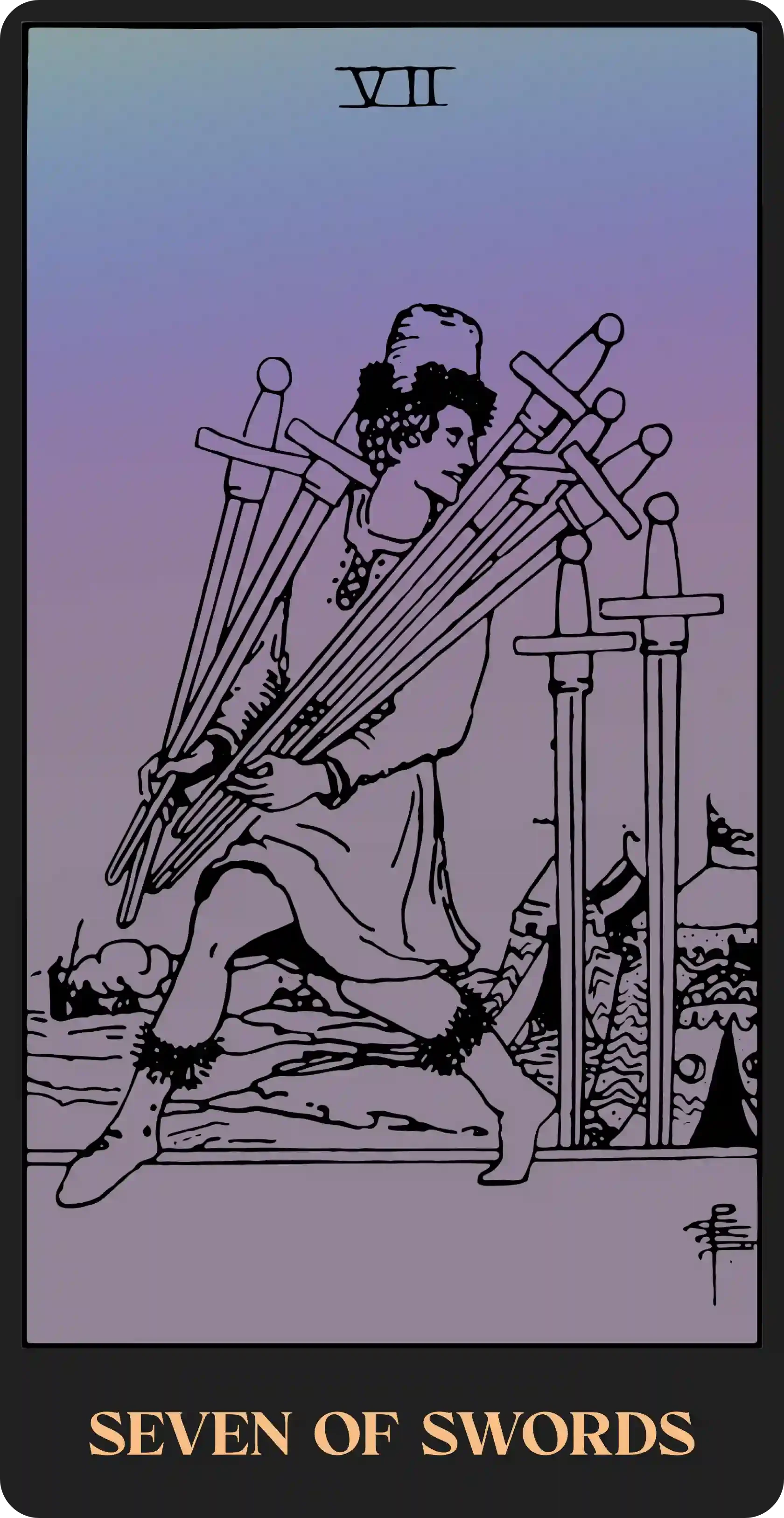 Like an expertly crafted sword, the well-honed and logical mind slices through emotion and deception like butter. Swords, like air, are quick and, if balanced by a master craftsman, can feel light as a feather. This lightness, inherent to the air element, allows for spontaneity, adaptability, and, at times, impulsiveness. Hence, we must remember that with great knowledge comes great responsibility. Whoever takes up the sword must do so tactfully (Seven of Swords) so as not to cut themselves or others (Five of Swords).
